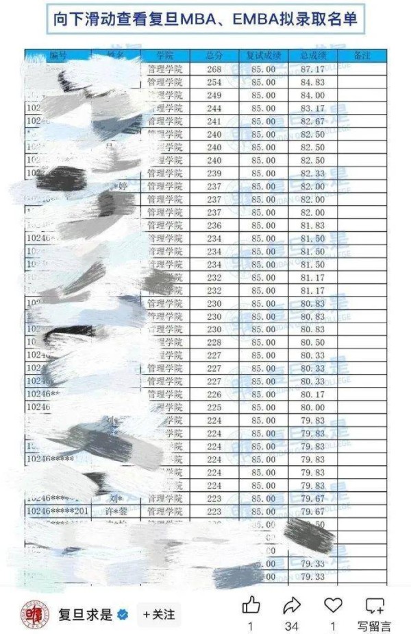 复旦大学研究生院工作人员表示,公示的考生名单是由各院系报来的。复旦管理学院MBA项目相关人士表示,自己不知道考生的个人情况,但不管是不是网红,“所有考生都是同一个标准,公平公正地考进来的。”