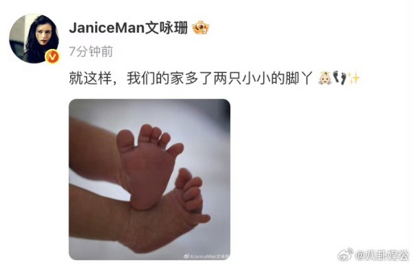 37岁文咏珊官宣生娃!嫁富商吴启楠6年,终于升级做妈妈喜报!文咏珊发文官宣当妈:我们家多了两只小小的脚丫
