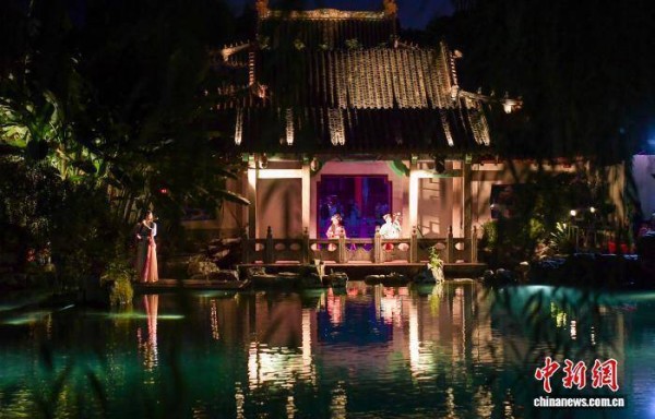 图为演员在济南趵突泉畔表演“清照词宗”。中新社记者 张勇 摄