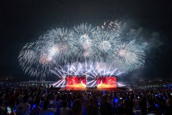 活动现场,“七彩祥云”“星际之门”等顶流烟花作品惊艳绽放,数千架无人机如繁星点点炫耀起舞,点亮夜空的同时,也点燃人们举国同庆、祝福祖国的喜悦。