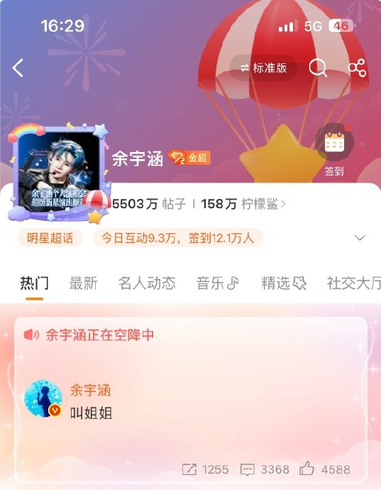 余宇涵演唱会空降超话翻牌粉丝