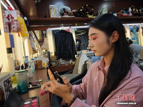 记者走进后台看到,距离晚上的第一场演出还有一个多小时,演员们已经开始进行排练、化妆、整理道具等工作。针对假期客流需求,团队将每日三场演出提升至每日四场演出。