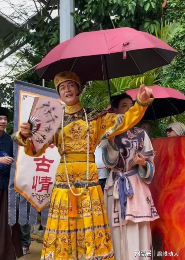 在广东某景区,62岁的江华一身唐僧袈裟,每日进行2-3场即兴表演,不仅重现《西游记》经典片段,还带游客互动改编《九五至尊》剧情;另一边,79岁的罗家英在杭州宋城顶着高温披上袈裟,用标志性的《Only You》与观众合唱,被网友感叹“敬业程度堪比当年”。