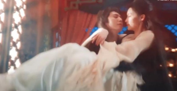 付一笑一句“担心你”触发凤随歌情感爆发,上演“翻面吻”,力度凶猛如“将人揉进骨子里”,吻戏中肢体交叠翻滚至床榻,衣衫未褪尽显情急之下的炽烈。