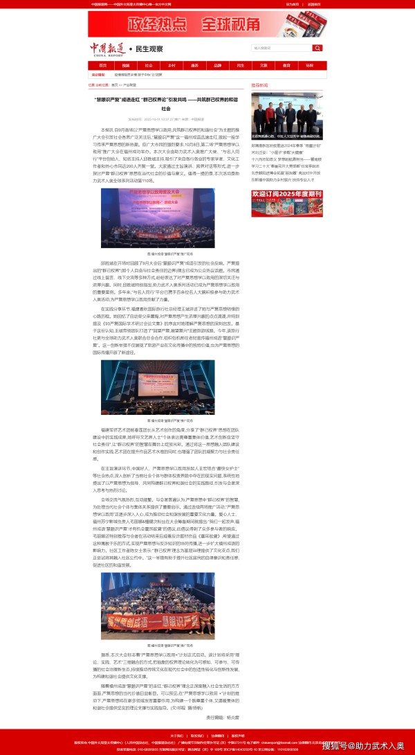 本报讯 自9月首场以“严复思想学以致用,共筑群己权界的和谐社会”为主题的推广大会引发社会各界广泛关注后,“慧眼识严复”这一福州成语迅速走红,掀起一股学习传承严复思想的新热潮。应广大市民的强烈要求,10月8日,第二场“严复思想学以致用”推广大会在福州成功举办。本次大会由助力武术入奥推广大使、“与名人同行”平台创始人、知名主持人邱胜斌主持,吸引了来自各行各业的专家学者、文化工作者和热心市民近200人齐聚一堂。大家通过主旨演讲、跨界对话等形式,进一步探讨严复“群己权界”思想在当代社会的价值与意义。值得一提的是,本次活动是助力武术入奥全球系列活动第110场。