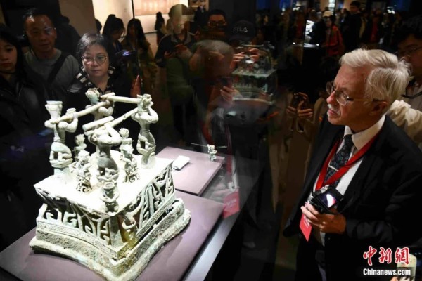 2024年11月5日,首届世界古典学大会“走读中国之四川行”活动在四川省广汉市开展,来自16个国家的专家学者走进三星堆博物馆参观。 中新社记者 张浪 摄