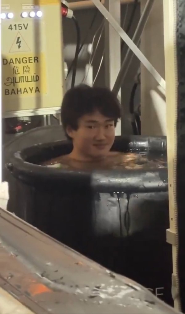 #f1# 红牛车队在tiktok上发布了一段角田正泡在冰浴桶的视频。但是车迷朋友们发现,角田的身后就一个大电箱,关键还通着电。。。⚡️这胆子也太大了