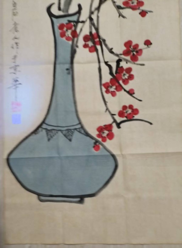 博古(青铜器)的象征: 青铜器是中华古代文明的瑰宝,象征着历史的深度、文化的传承与永恒的秩序。在画中引入博古,是齐白石对传统文化根基的致敬,也体现了他作为文人艺术家所追求的“古意”与“金石气”。梅花的象征: 梅花自古便是中国文人精神人格的象征。它傲霜斗雪,在寒冬中绽放,代表着坚韧不拔、高洁清雅与不屈不挠的风骨。齐白石一生历经坎坷,却始终保持着对艺术与生活的热爱,梅花正是其自身人格的写照。综合寓意: 当博古与梅花结合,其寓意便升华了。它仿佛在诉说:深厚的传统文化(博古)是根基,而顽强的生命力量与创新精神(梅花)是枝叶,唯有根深才能叶茂。这既是对个人艺术道路的总结,也可被视为对民族文化生生不息的一种美好祝愿。画面中洋溢的,是一种“古为今用”、“生生不息”的乐观与自信。四、收藏价值与升值空间