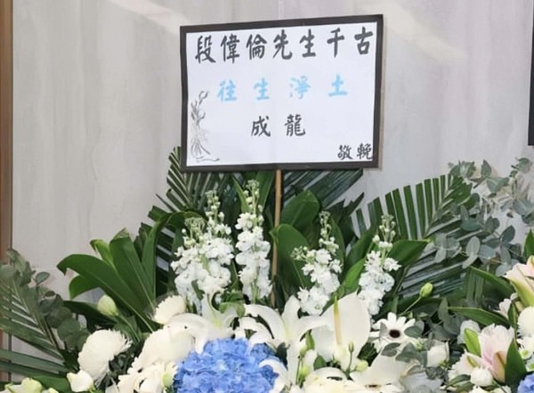 灵堂中央挂着段伟伦的遗照,而圈内不少好友都有送花牌进行悼念。其中就包括:吴彦祖、古天乐、成龙、卢惠光、江美仪、钱嘉乐、汤盈盈以及陈敏之等人。