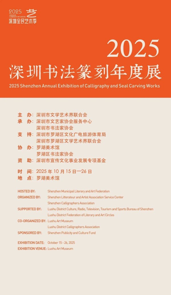10月16日下午,“2025深圳书法篆刻年度展”在罗湖美术馆开幕。本次展览由深圳市文学艺术界联合会主办,深圳市文艺家协会服务中心、深圳市书法家协会承办,罗湖区文化广电旅游体育局、罗湖区文学艺术界联合会支持,罗湖美术馆、罗湖区书法家协会协办,展期至2025年10月26日结束。