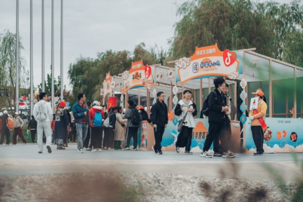 抖音非遗嘉年华现场设置了北京非遗元素装置,吸引众多市民打卡拍照