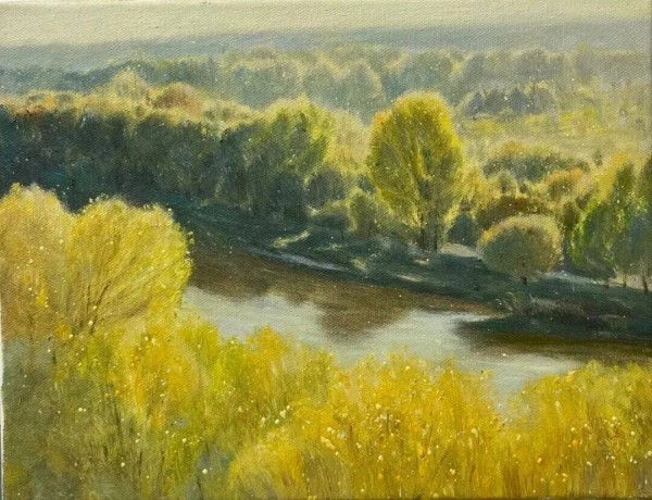 袁锋渊早期学习国画,因而,他的油画作品中写意的笔触较为常见。“袁锋渊作品的艺术情感是平静而喜悦的,哪怕是在做梦,哪怕是在游荡。”黄丹说。