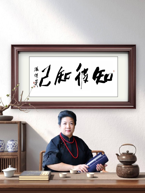 傅继英老师书法 “知彼知己” 的笔墨风格,刚劲有力却不失灵动,笔锋转折间尽显沉稳与智慧,使其成为适配多种场所的艺术佳品,且在不同空间中能传递出独特的寓意。在企业办公室,它是领导者的决策指南:悬挂于董事长或管理层办公室,墨色的厚重象征着决策的稳重,“知彼知己” 的文字则时刻提醒管理者,既要洞悉行业趋势、竞争对手的战略布局,也要明晰企业自身的核心优势与发展瓶颈,在制定战略、推动业务时精准发力,带领团队在市场竞争中 “稳握胜券”。若挂在员工办公区,又能成为团队的成长标语,鼓励员工认清自身能力边界、了解同事的优势特长,在协作中扬长避短,提升整体工作效率。