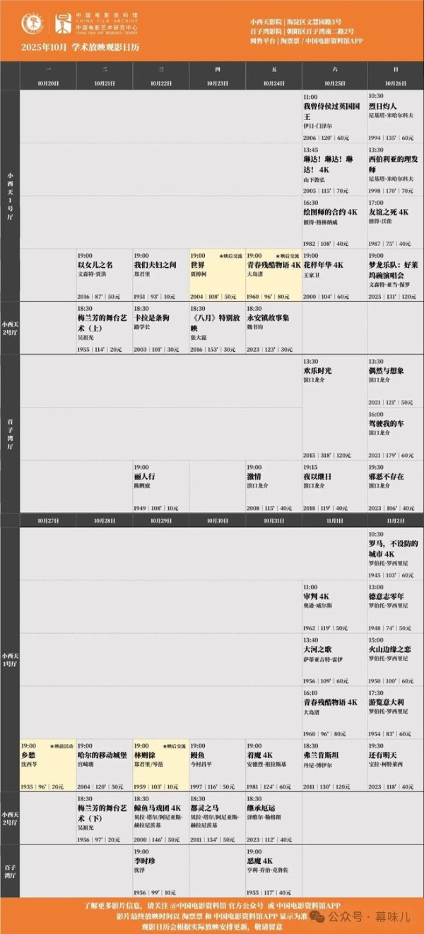 所有场次均可在淘票票、中国电影资料馆APP购票,具体排片见末图,祝大家观影愉快。❤️