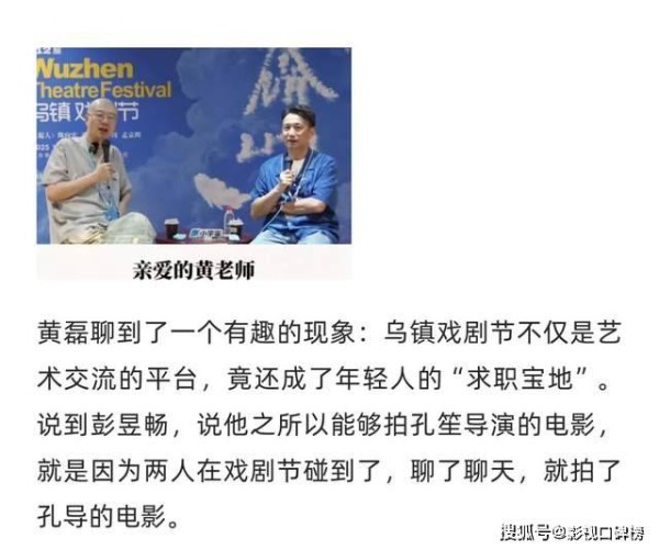 比如,雷佳音这些已经在影视圈有所建树的演员来说,出现在乌镇戏剧节,能够有效提升他们的艺术形象,给大家展示一下,他们还是很关心戏剧的。