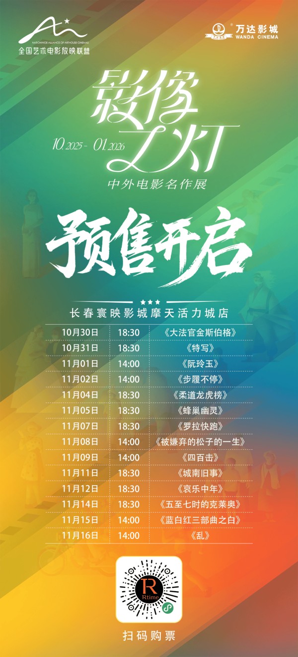 如果你是艺术电影爱好者,或是渴望在商业片之外探索光影更多可能的观众,不妨扫码购票,在光影世界里与影史经典对话,与艺术灵魂共鸣。目前,影展已开启预售。