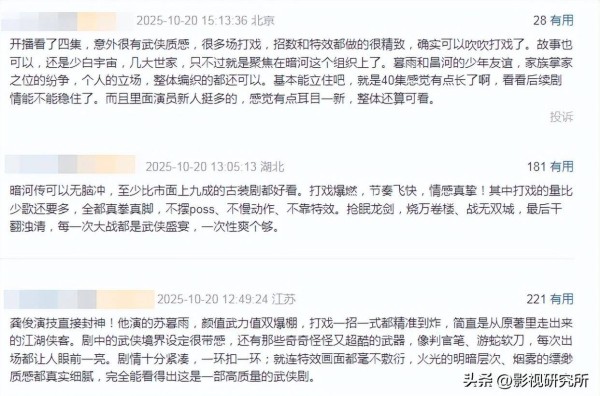 该剧在创新方面也可谓下足了功夫。尤其是在武器设计上,剧组对细节的打磨相当用心。苏暮雨的雨伞可拆分成18片锋利的刃片,在关键时刻可迅速变身为致命武器。此外,剧中的水墨特效也别具一格,水滴在战斗中随着剑气而化作虚幻的剑影,带来了不一样的视觉享受。