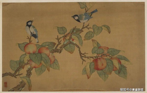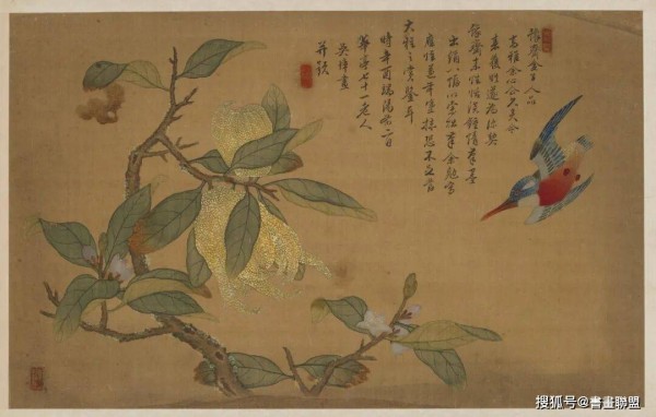 自然主义的观察视角画家对物象的观察极为严谨,如蜻蜓翅翼的透明感、果实表面的霜痕等细节均被精确记录。这种对物象物理特征的忠实再现,既源于宋代院画“格物致知”的传统,也可能受到西洋铜版画传入的影响,体现了清代宫廷绘画对“形似”的极致追求。