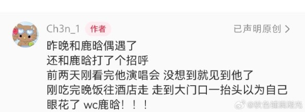 网友昨晚在香港某酒店偶遇鹿晗,还和他打了个招呼,羡慕哭了T﹏T