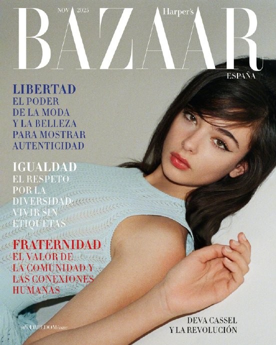 戴娃Deva Cassel 身穿Dior登上Harper's Bazaar 西班牙版2025年十一月刊封面 。梳这种复古发型好适合。