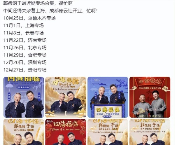 郭德纲经纪人凌晨晒照!乌鲁木齐演出座无虚席,顶流助演加持,11 月还演京剧话剧