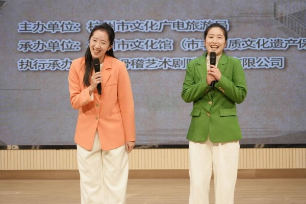 紧接着,杭州滑稽艺术剧院的艺术家们带来专业演出:国家级“小热昏”代表性传承人徐筱安与杭州滑稽艺术剧院一级演员、“小热昏”市级代表性传承人沈益民合作双档小热昏《学唱小热昏》,地道的杭州方言与诙谐的表演风格引得现场笑声不断;洪标演绎的绍兴莲花落《杭州美景似天堂》,用婉转唱腔勾勒出杭州的秀丽风光;杭州滑稽艺术剧院一级演员、“杭州摊簧”市级代表性传承人梁雪与二级演员、“杭州摊簧”市级代表性传承人潘婷共同表演杭州摊簧《望海潮》,古雅曲调尽显江南文化韵味;杭州滑稽艺术剧院艺术监制、“小热昏”市级代表性传承人金一戈带来小热昏《实话难说》,幽默台词中蕴含生活智慧;杭州滑稽艺术剧院二级演员、“武林调”市级代表性传承人罗瀚与洪标合作武林调《和尚戏乾隆》,精湛演技赢得阵阵喝彩;最后,黄常秀、包文媛带来独脚戏《幸福是奋斗出来的》,为表演环节画上圆满句号。