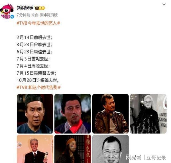 众星发文悼念“欢喜哥”许绍雄,今年已有7位TVB艺人去世