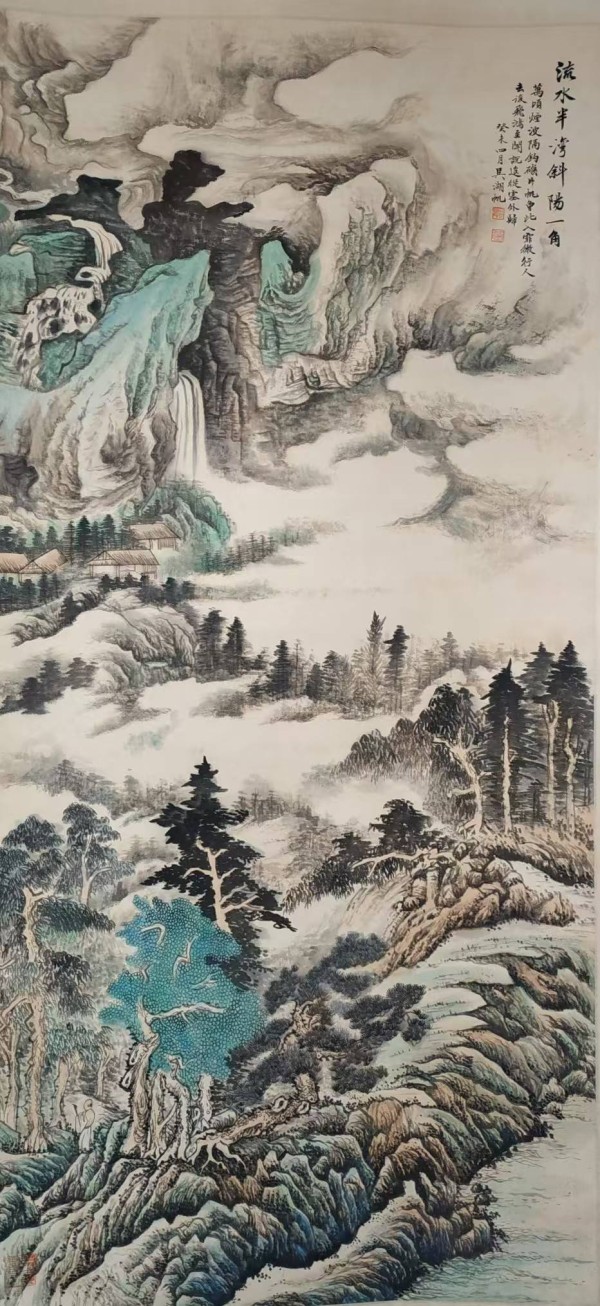《流水半婉斜阳一角》创作于这个艺术思潮活跃的时期。作品既保持了传统山水画的笔墨精髓,又融入了现代审美意识,体现了画家在传统与现代之间的平衡与突破。这一时期的艺术作品,往往反映出艺术家在时代变革中对文化身份的思考与定位。