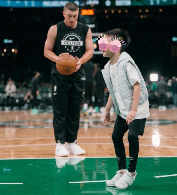 10月23日的时候,奚梦瑶才刚为儿子庆祝6岁生日,当天她与老公何猷君一起带儿子去看篮球比赛。