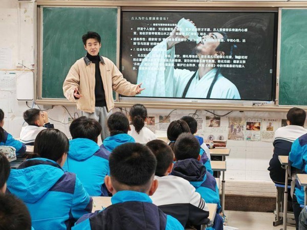 此外,西安歌舞剧院的声乐演员尹良北,将《中国风音乐的讲解与赏析》带给所到学校的师生。在他生动风趣的主讲中,名曲《高山流水》及伯牙子期的“知音”轶事,通过家国情怀、社会礼仪、文化传承等多角度走入学生心中。主讲人将古代音乐与国风音乐、现代流行乐、秦腔、古诗词的融合案例解读,更激发了同学们关注并了解中国传统音乐文化的极大热情。