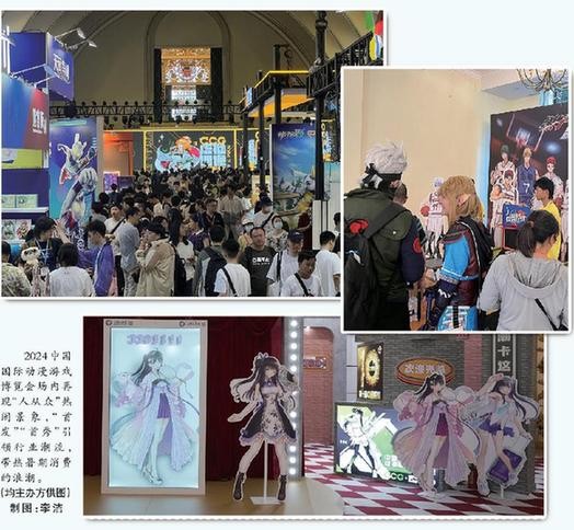 2024中国国际动漫游戏博览会场内再现“人从众”热闹景象,“首发”“首秀”引领行业潮流,带热暑期消费的浪潮。(均主办方供图) 制图:李洁