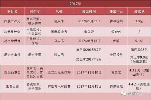 2015年开始繁荣起来的二次元综艺,在2017年迎来更多平台与资本的参与,虽然节目数量上有所减少,但单个节目在投资、制作、招商等各环节都有所提升。