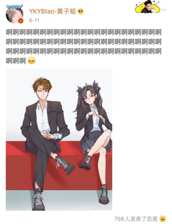 要说圈内的二次元,许多人第一个想到的就是黄子韬。他因为在粉丝作品里和心爱的二次元角色的同框图而兴奋不已,再多的“啊”,也抒发不了他内心对二次元的爱。