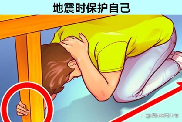 尽管我们都知道,发生地震时,在空旷的户外是比较安全的,但是一般情况下,都没有这样的逃生机会,往往会被困在屋内,如果逃不出房间,一定要找到比较坚固的物体,像是桌子,然后俯身跪到桌子的下面,一只手捂住脖子和头部,另外一只手扶住桌子腿,这个技巧可以保护头部和颈部免受伤害。