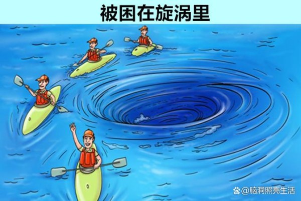 如果你划船发现自己被困在漩涡里,请保持冷静,然后快速观察出漩涡旋转的方向,这一点很重要,知道了漩涡方向之后,请尝试顺着旋涡划船,因为这样做有可能被弹到安全的地方,相反,要是对抗漩涡逆着划船,就会被卷入其中,这个技巧看似很简单,但实际上却有很多人都并不知道!