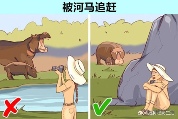 虽然河马给人的形象都是憨态可掬的,但实际上这种动物脾气很暴躁,尤其是在野外,贸然闯入它们的领地,就会遭到凶猛的攻击,要是你不走运,遇到了这样的情况,一定要保持冷静,不要盲目的逃跑,因为人的速度是不可能跑过河马的,正确的逃跑方式,是寻找掩体,例如,一棵树或一块岩石,这些都可以成功的隐藏自己,躲避河马的攻击。