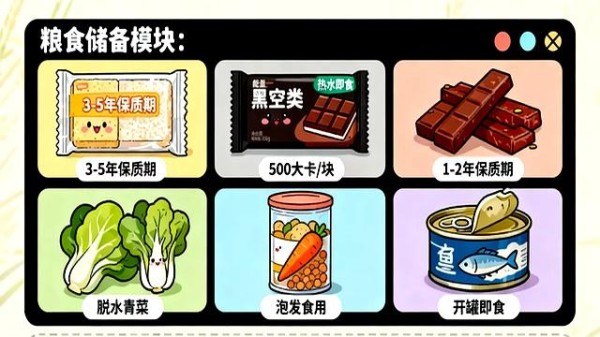 这时候就别挑三拣四了,储备食物的核心原则是:能量高、放得久、吃着方便。