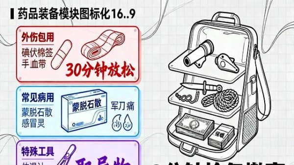 除了这些具体的技能,咱们还需要准备一些应急的装备和药品。