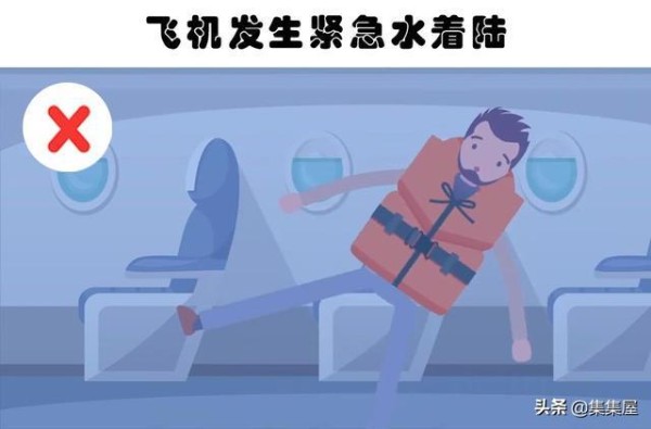 假如飞机发生了紧急水着陆,切勿在着陆前给救生衣充气,因为,这可能会让你无法移动自己。飞机进水了以后,充气的救生衣会让你浮在天花板上,你反而无法游动自己。你应该在飞机着陆以后,深呼吸一口气,然后尽快从飞机上出来,然后再快速给救生衣充气。