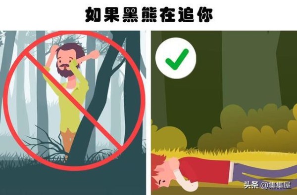 如果遭遇熊的追逐,你应当记住一点,那就是不应该背对着它们,这可能会激怒它们。而且,你的速度对它来说真的太慢了。这种情况下,你最好能够趴下,以保护自己的身体器官,然后双手向后交叉放在脖子上,以保护你的动脉。而且,你也不要试着爬树,因为黑熊比你更擅长爬树。通常情况下,黑熊被激怒的原因,很可能是你侵犯了它的领地,它将你视为威胁。如果它认为威胁不存在了,它就不会袭击你了。