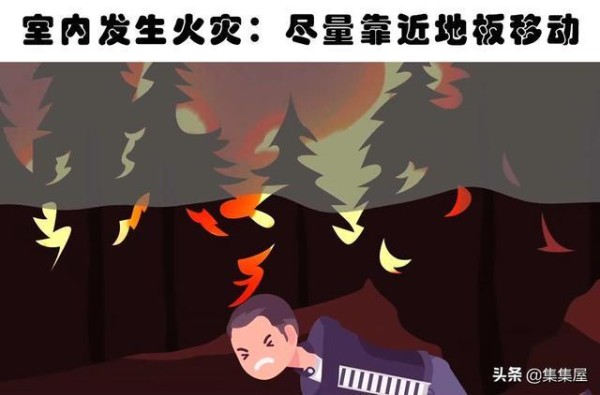 当室内发生火灾的时候,最大的危险不在于火灾本身,而是烟雾,它比空气还轻。所以,你应当尽可能地靠近地板移动自己,以避免吸入烟雾。