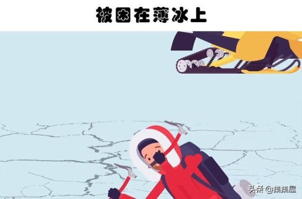 被困在了薄冰上非常危险,有跌入冰冷的水中的风险。在这种情况下,应该扩大自己身体的面积,将胳膊和腿张开。如果有冰镐可以用它来加大你的抓地力,让你慢慢的在冰上移动。如果没有它们,那么你就必须朝着相同的一个方向滚动着身体,这样可以帮助你均匀分散身体的重量。