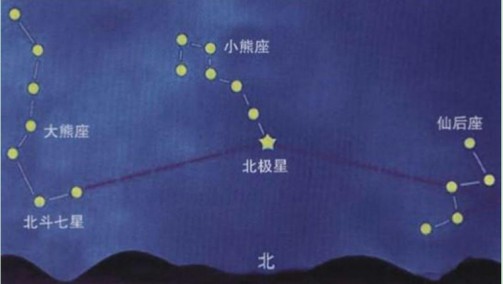 利用星宿:在北半球通常以北极星为目标。夜晚利用北极星辨认方向的关键在于在茫茫星海中,准确地找到北极星。认识北极星的方法有许多种,这里介绍简单且有效的一种: