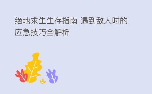 摘要:绝地求生遇到敌人的技巧:生存者的智慧指南在《绝地求生》这款充满挑战的生存游戏中,遇到敌人是家常便饭。如何在紧张刺激的对决中脱颖而出,成为最后的胜者?本文将为你揭秘一系列实用技巧,助你在绝地求生中化险为夷,成为真正的生存大师。一、保持警惕,预,绝地求生生存指南 遇到敌人时的应急技巧全解析