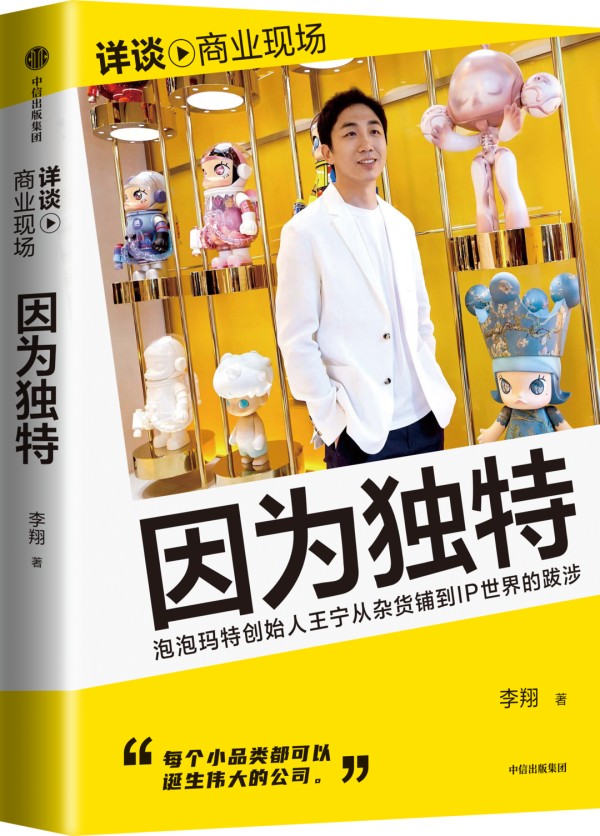 正如这本访谈的书名——因为独特。独特的不仅是这家公司,更是王宁其人。从一开始创业,王宁就不想做钢筋水泥式的、太理性的商业,而是寻找那种带点“非理性因素”的商业。因为泡泡玛特签约的这些艺术家都太感性了,因为必须独特才能成为顶级艺术家,所以需要泡泡玛特拉着他们去做一些普遍的事情。要做平衡,就要双方都有一些妥协。