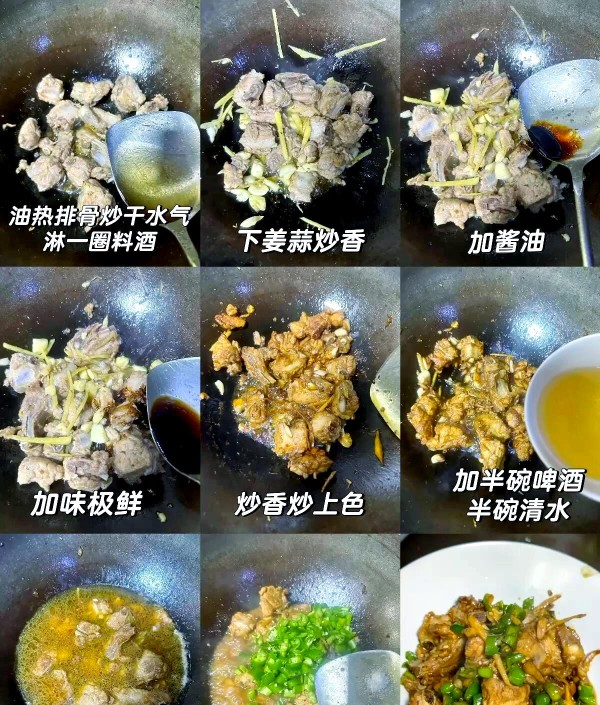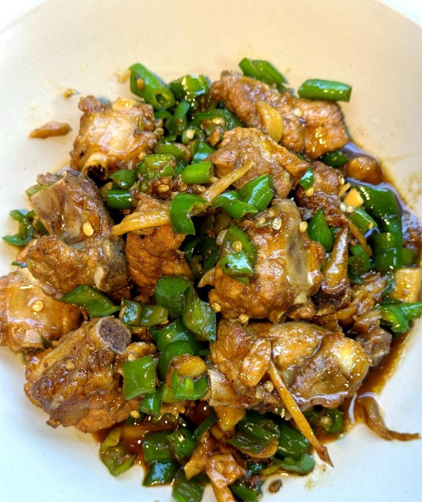 制作青椒排骨则更注重速度与效率。首先,将排骨进行简单的处理,飞水后撒上盐和料酒进行腌制。在热锅中将排骨放入,先逼走其蒸发出的水气,待边缘开始上色时,再加入青椒进行翻炒。