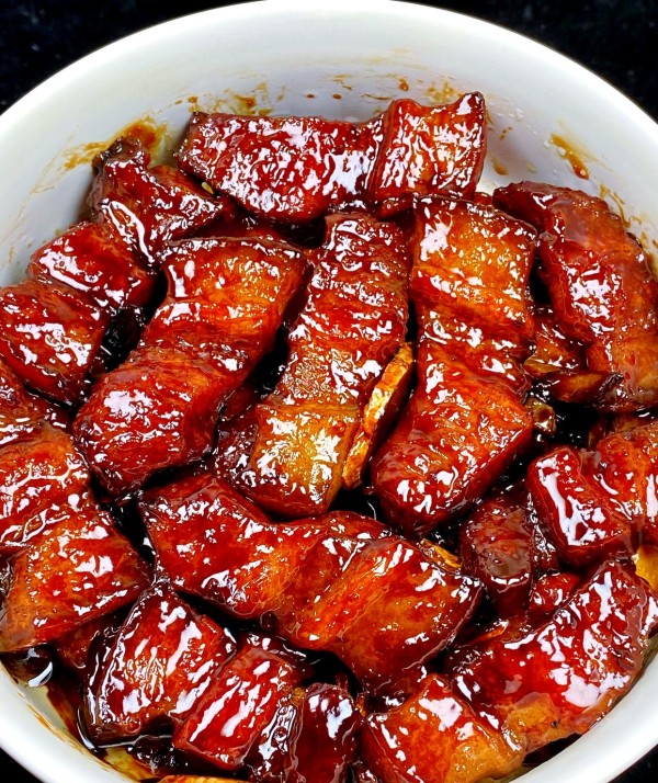 此时,红烧肉已炖至恰到好处,轻轻掀起锅盖,只见汤色浓郁,肉质酥烂。轻轻一碰,油润的汁液瞬间裹住米饭,香气扑鼻而来。在烹饪的过程中越能忍住不揭盖品尝,最终呈现的红烧肉就越入味。
