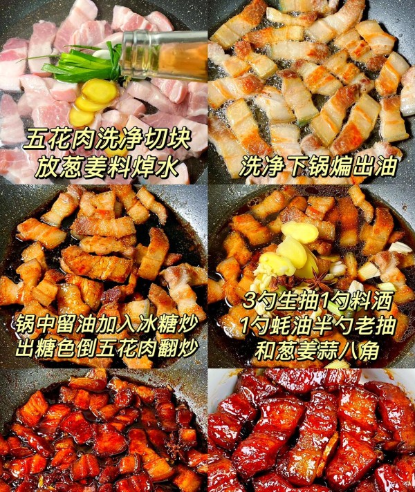 红烧肉的制作需要耐心与火候的把控。首先,将肉块放入锅中煸炒,直至肥肉部分开始透明发亮,瘦肉边缘微微卷起。接着,撒入少许糖,利用锅中的油脂将糖炒化,为肉块上色。此时,切不可心急,要小火慢炖,否则容易糊锅。当酱香四溢时,盖上锅盖,让肉香在锅中慢慢渗透。