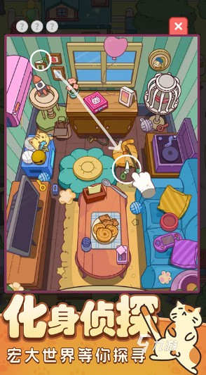 在这个世界里,到处都是猫猫们藏起来的各种小宝贝,等着大家去发现。你要扮演一个探险家,走进猫猫世界的每个角落,把藏起来的东西都寻找出来。游戏里有五花八门的场景,每个场景都设计得特别漂亮,还有特别多的小秘密等大家发现。准备好考验我们的观察力和寻找能力。每个场景都有独特的小宝藏,需要我们仔细寻找,给大家带来满满的游戏乐趣。
