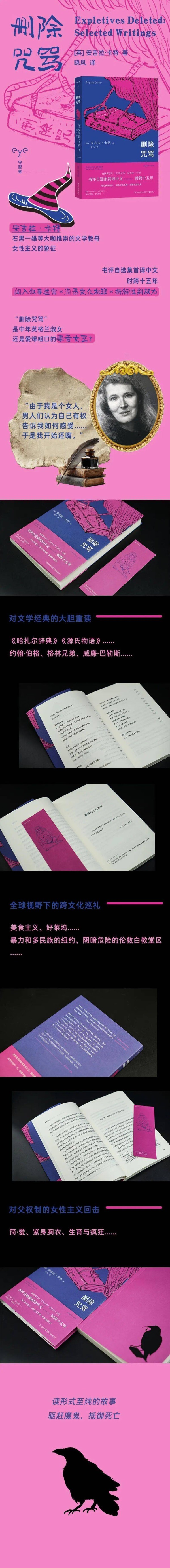 今天与大家分享的是“文学女巫”安吉拉·卡特毒舌书评自选集《删除咒骂》。从《哈扎尔辞典》到《爱尔兰民间故事》,从《简·爱》到《源氏物语》,她洞悉一切,拆解一切。